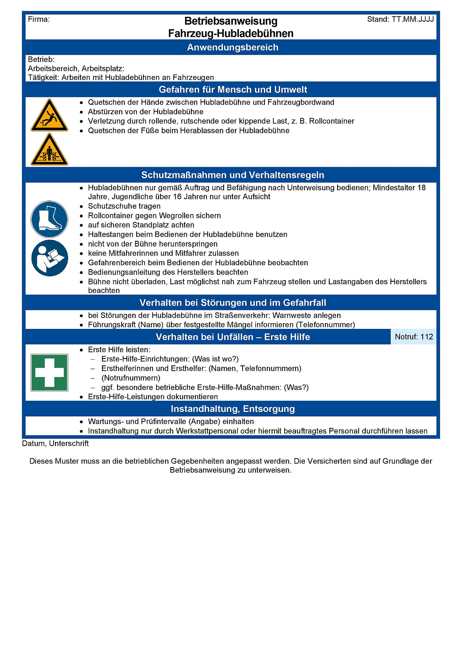 - Muster-Betriebsanweisung Fahrzeug-Hubladebühnen (DOCX, 263,47 KB)