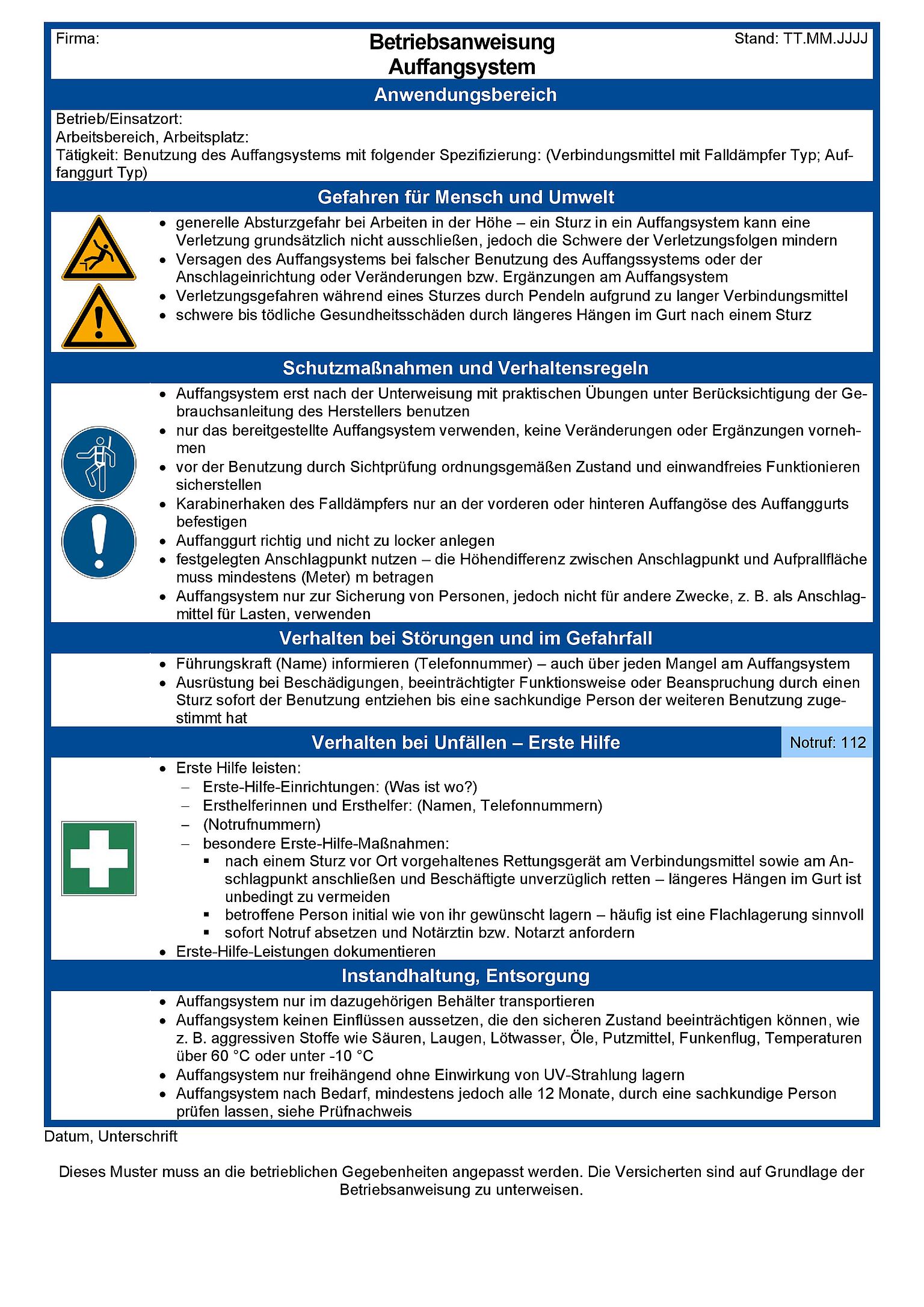 - Muster-Betriebsanweisung Auffangsystem (DOCX, 312,39 KB)