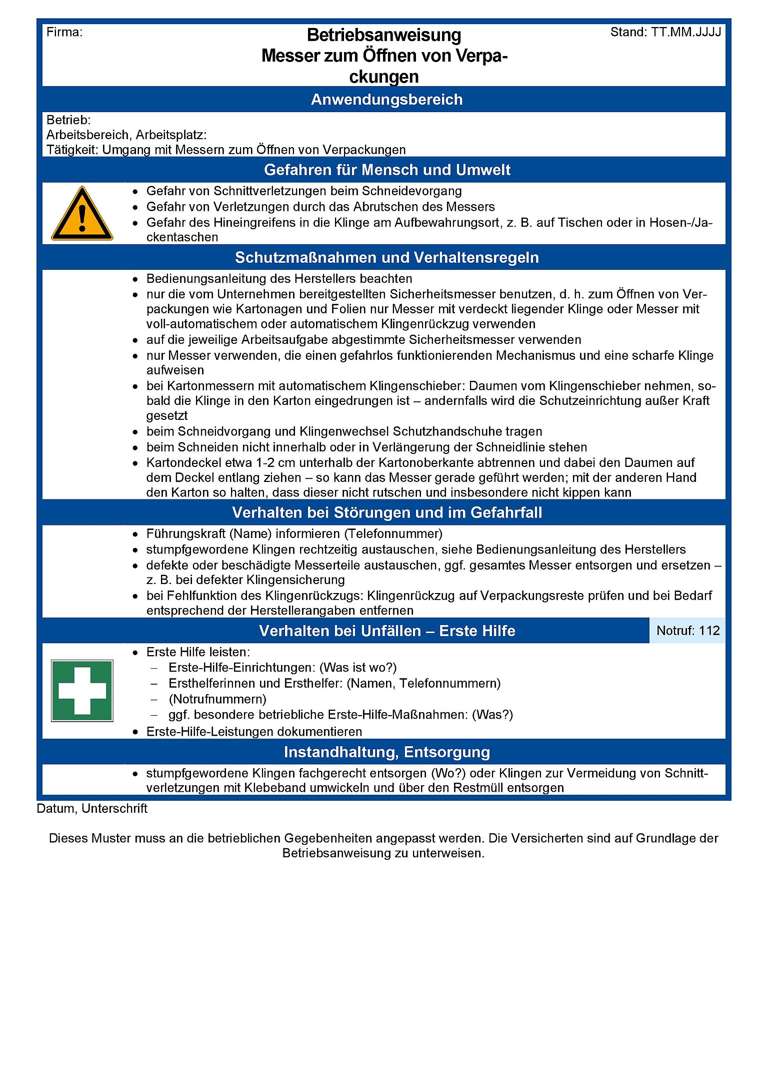 - Muster-Betriebsanweisung Messer zum Öffnen von Verpackungen (DOCX, 99,84 KB)
