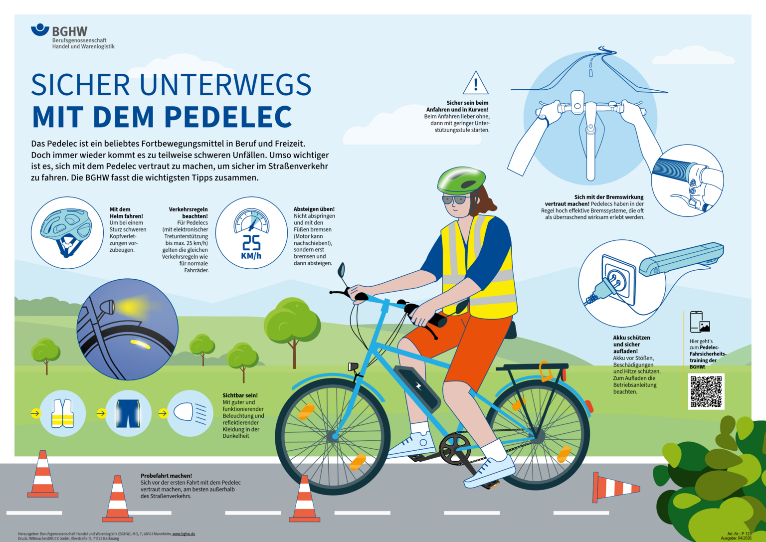 Dieses Plakat (DIN A2) bietet Tipps und Empfehlungen zum sicheren Fahren mit dem Pedelec.