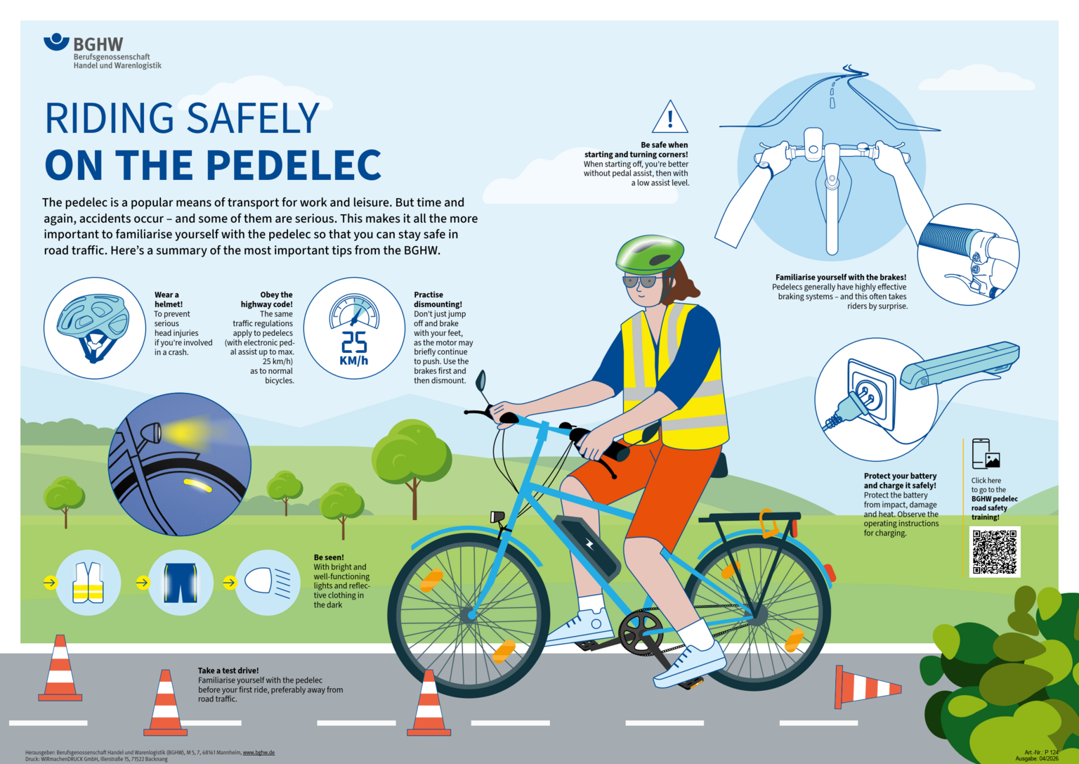 This poster (DIN A2) provides tips and advice on how to ride a pedelec safely. (Text übersetzt mit DeepL)