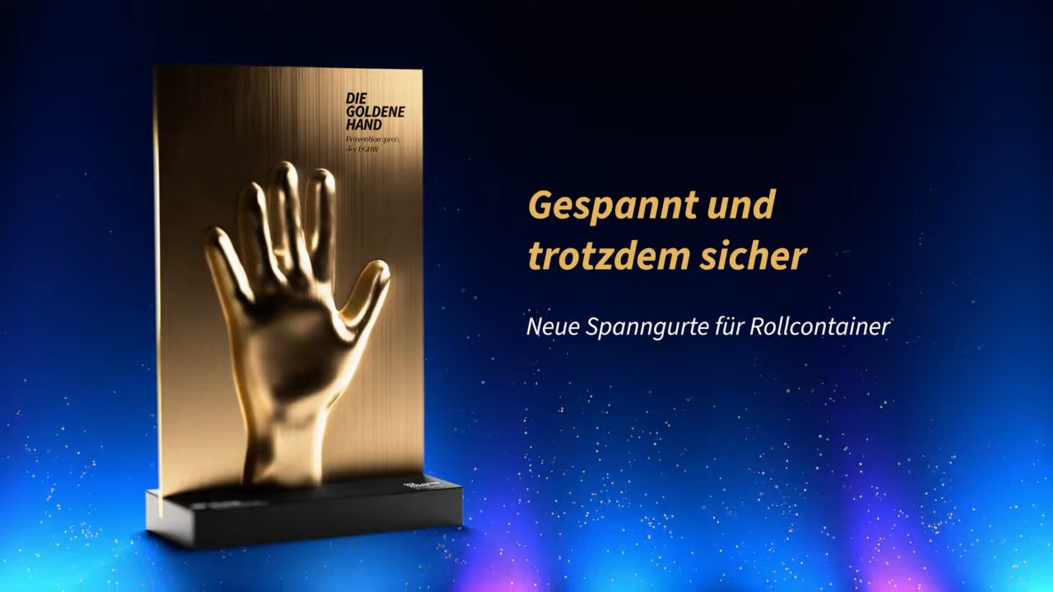 Dieses Video (Dauer: 03:19 Min.) stellt einen Gewinnerbeitrag des Präventionspreises „Die Goldene Hand“ aus dem Jahr 2025 vor. Im Rewe-Lager Henstedt-Ulzburg erfolgt mittlerweile eine teilautomatisierte Kommissionierung. Dafür ist der Einsatz von Gummi-Spanngurten an den Rollcontainern erforderlich. In der Vergangenheit kam es wiederholt zu Verletzungen durch zurückschnellende Gummispanngurte. Um dies zu vermeiden, entwarf das Unternehmen einen neuartigen, zweigeteilten Gummispanngurt mit flachen Haken. Diese Innovation verhindert gefährliches Überspannen, Verhaken am Boden und Rückschläge ins Gesicht. Eine spürbare Erleichterung und mehr Sicherheit im Arbeitsalltag.