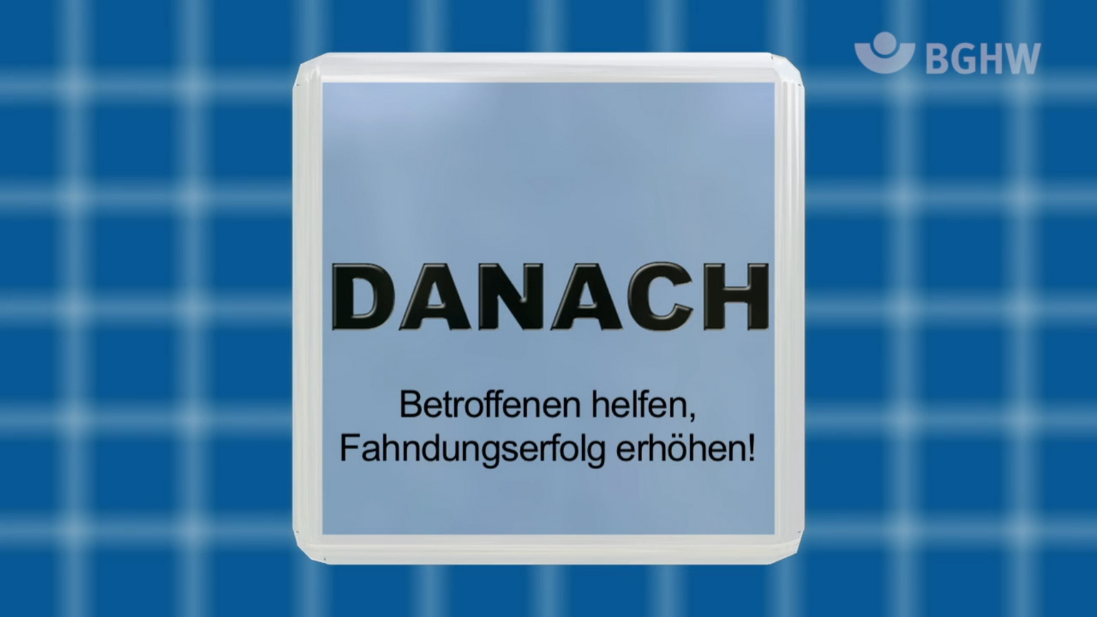 Dieses Video (Dauer: 05:21 Min.) beschäftigt sich mit der Frage, wie man sich nach einem Überfall richtig verhält. Angefangen bei der Alarmierung der Polizei, die Täterbeschreibung, die Erste Hilfe für etwaige Opfer bis hin zur Vermeidung von Spätfolgen eines Überfalls, z. B. in Form psychischer Belastungsstörungen. Im Falle des Falles bietet die BGHW auch eine psychologische Soforthilfe an.
