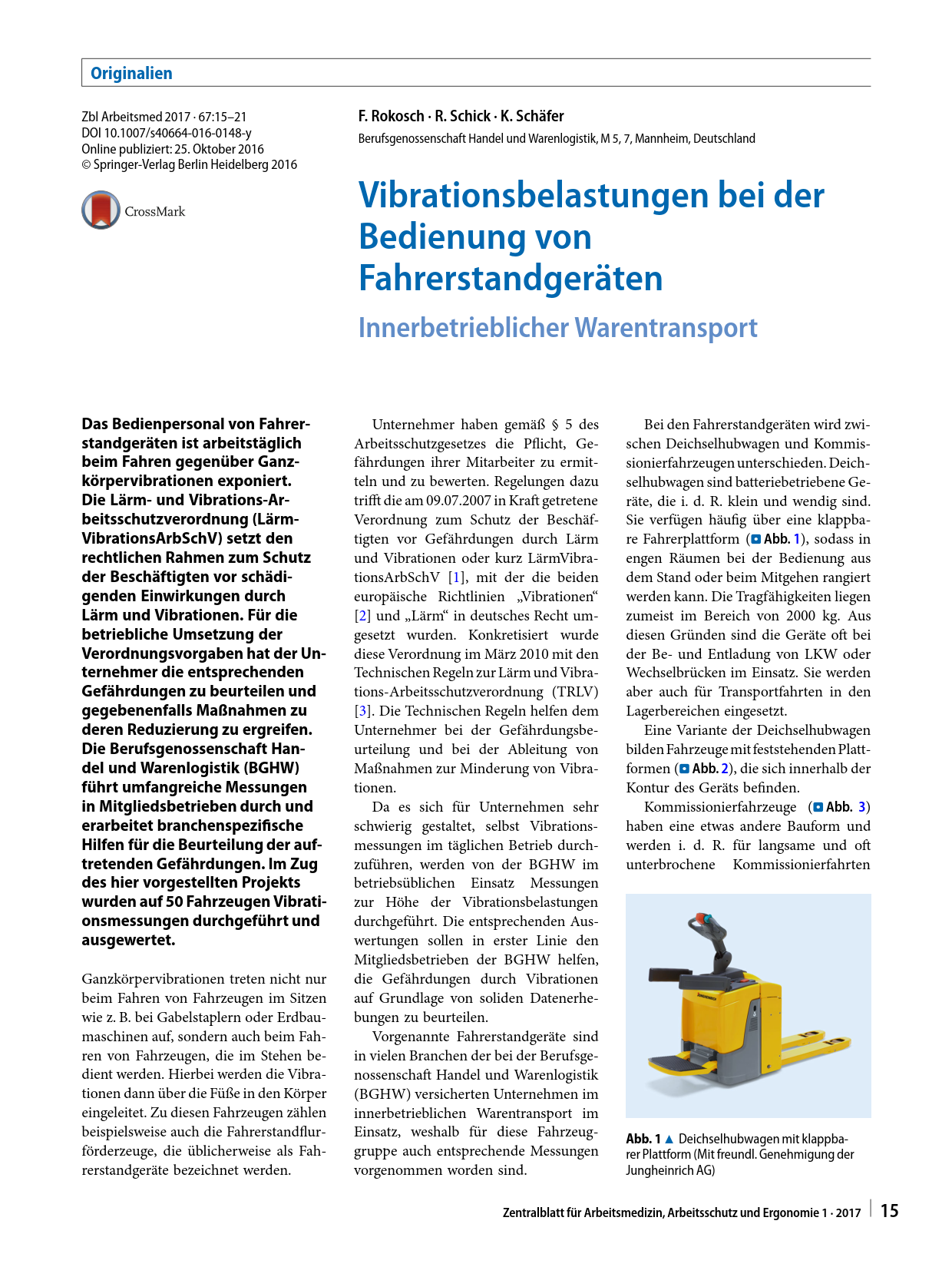 Vibrationsbelastungen bei der Bedienung von Fahrerstandgeräten - Innerbetrieblicher Warentransport