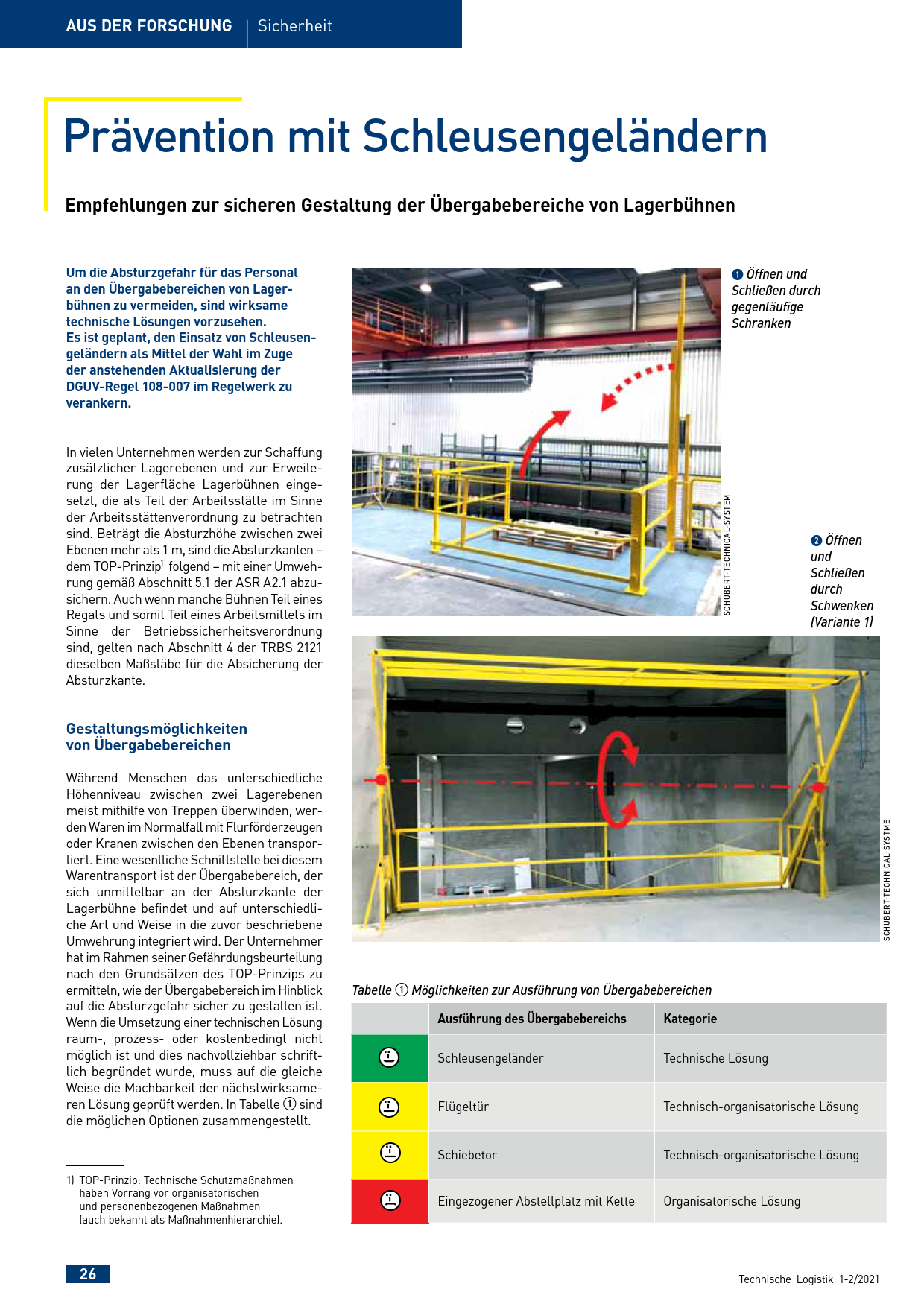 Prävention mit Schleusengeländern - Empfehlungen zur sicheren Gestaltung der Übergabebereiche von Lagerbühnen