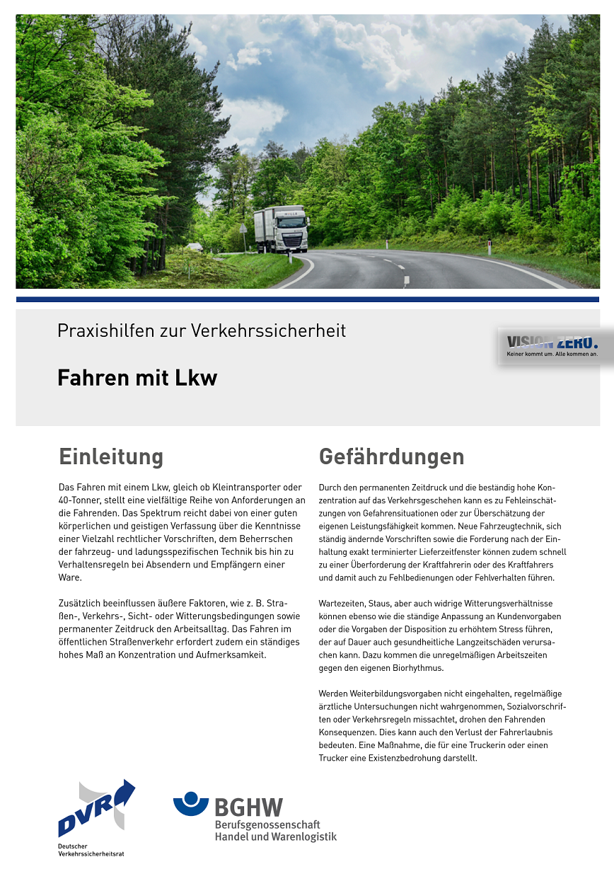 - Praxishilfen zur Verkehrssicherheit - Fahren mit Lkw (PDF, 3,67 MB)