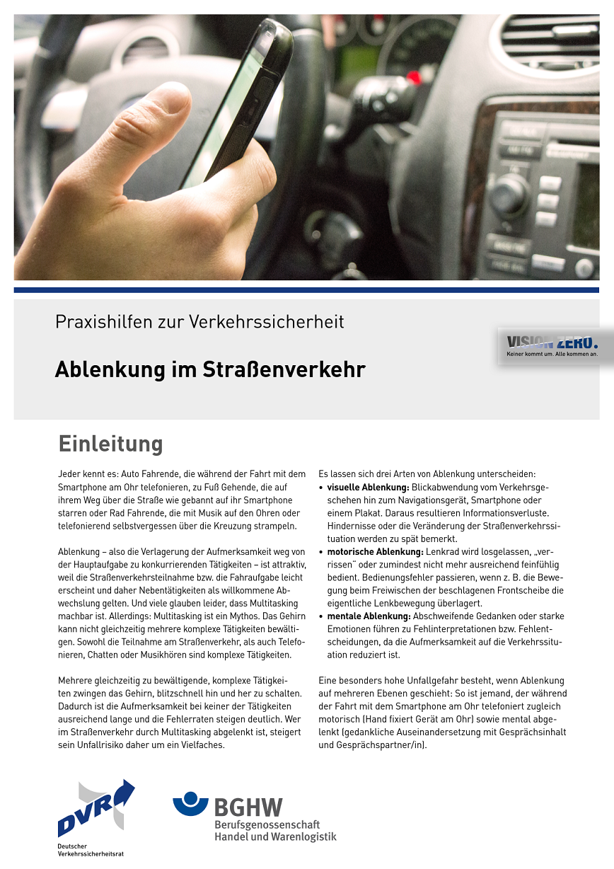 Praxishilfen zur Verkehrssicherheit - Ablenkung im Straßenverkehr