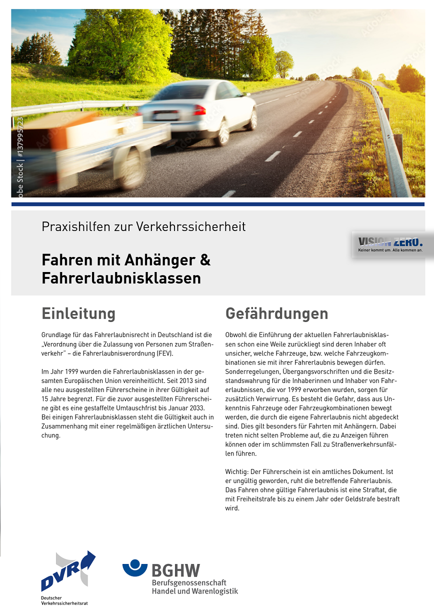 Praxishilfen zur Verkehrssicherheit - Fahren mit Anhänger & Fahrerlaubnisklassen