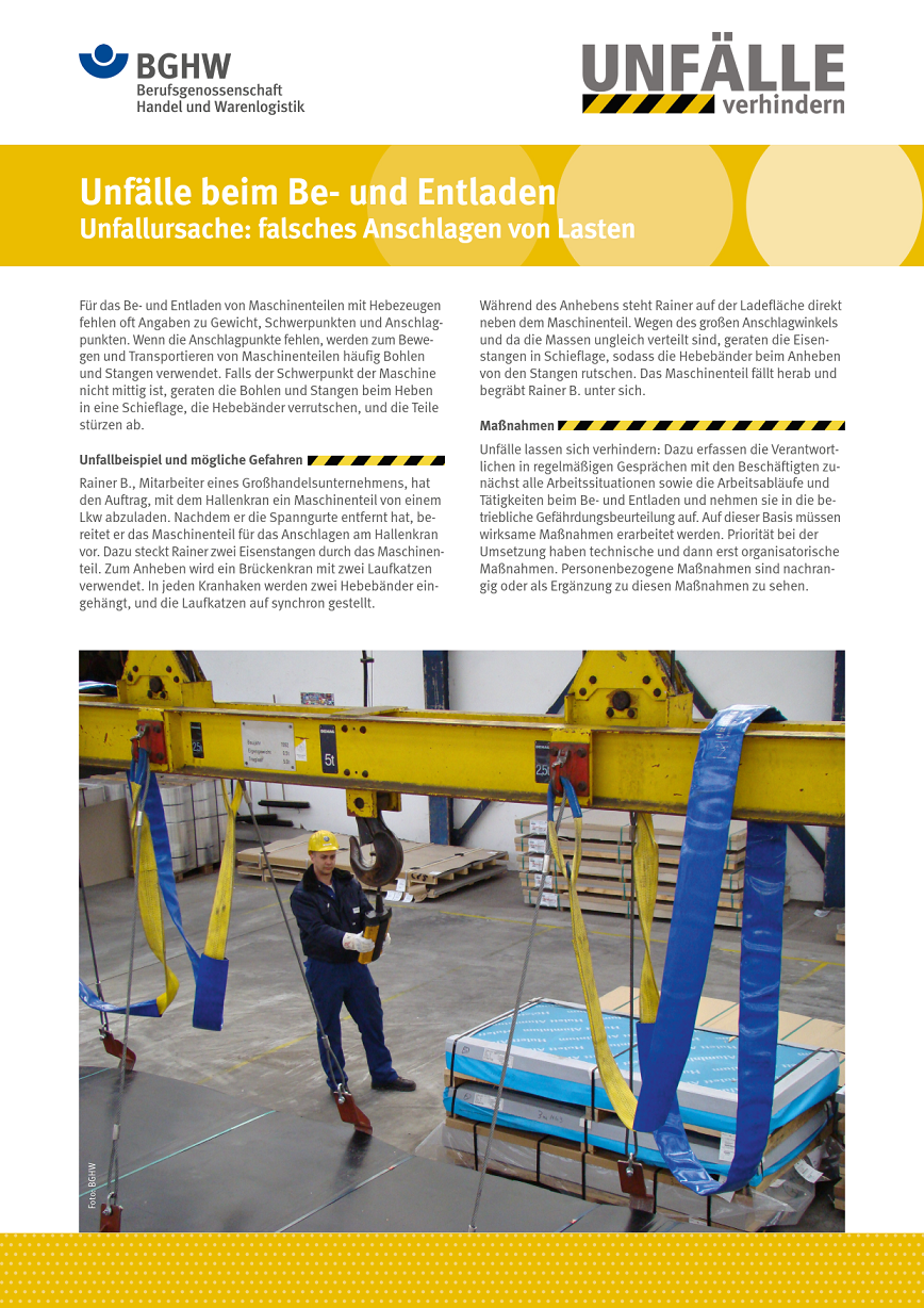 - Unfälle beim Be- und Entladen - Unfallursache: falsches Anschlagen von Lasten (PDF, 4,45 MB)