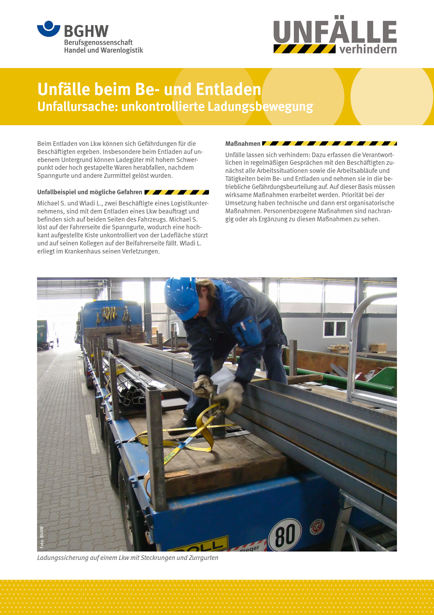 - Unfälle beim Be- und Entladen - Unfallursache: unkontrollierte Ladungsbewegung (PDF, 4,12 MB)