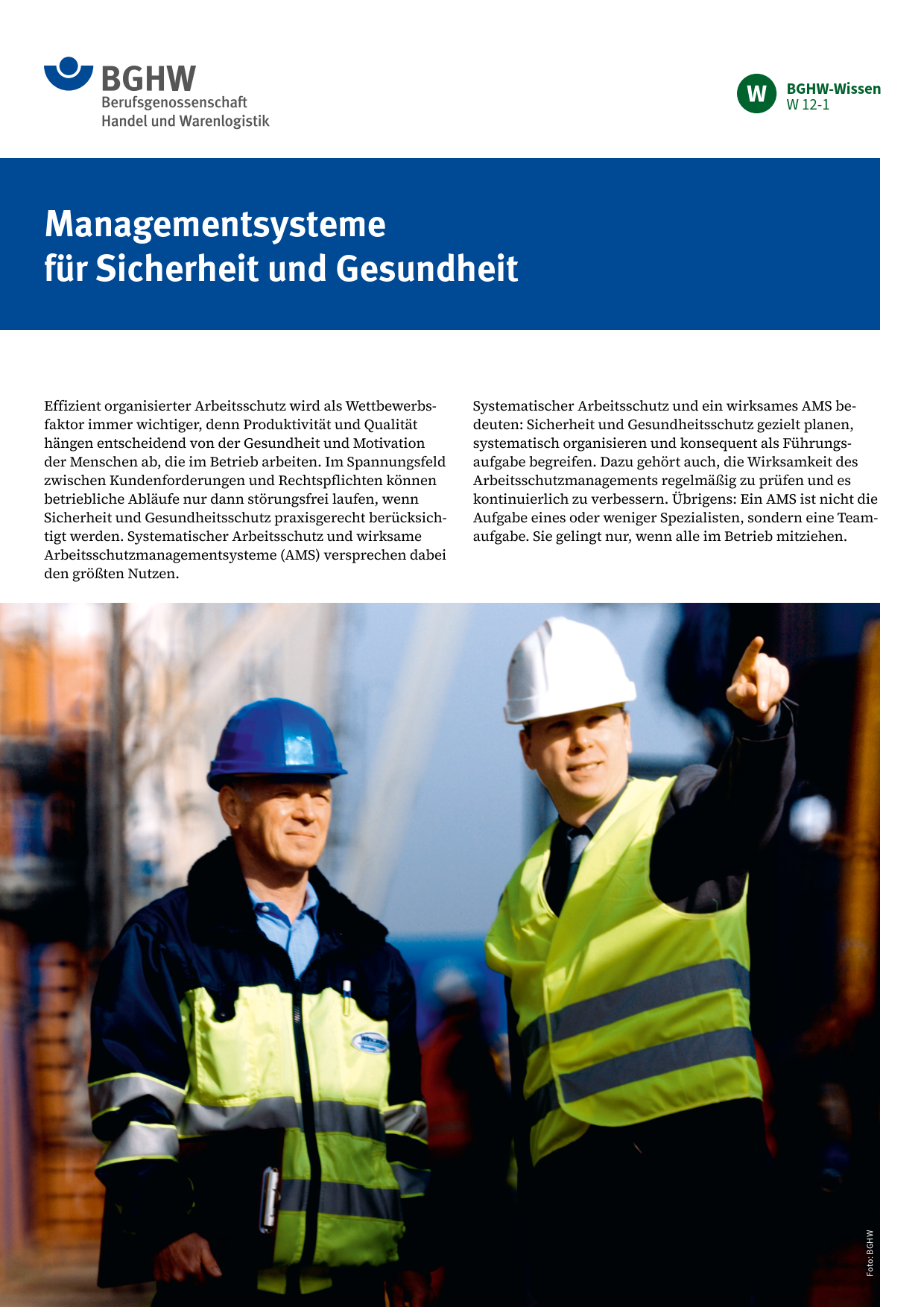 Dieses BGHW-Wissen informiert über die Vorteile eines Arbeitsschutzmanagementsystems und das Angebot „Sicher mit System“ der BGHW zur Erlangung einer Zertifizierung im Arbeitsschutz. Enthalten sind darüber hinaus Hinweise auf weiterführende Informationen.