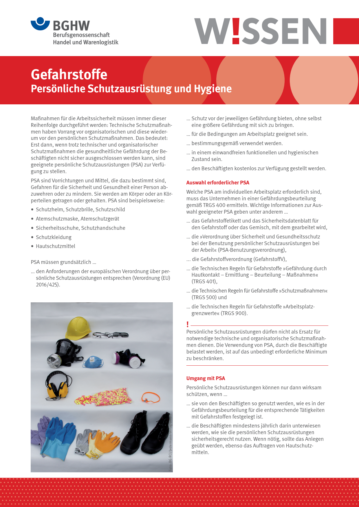 - Gefahrstoffe - Persönliche Schutzausrüstung und Hygiene (PDF, 946,53 KB)