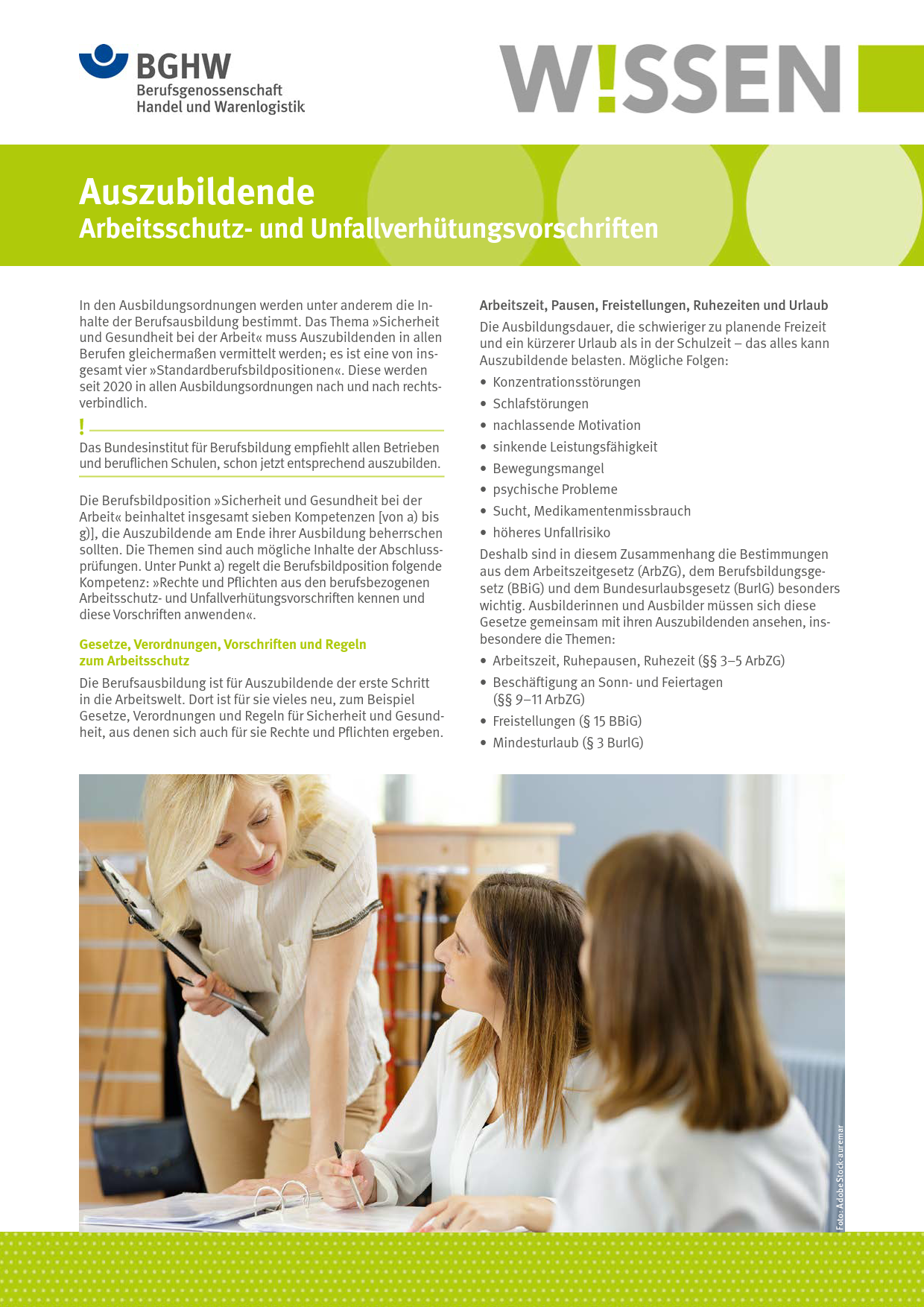 Auszubildende - Arbeitsschutz- und Unfallverhütungsvorschriften