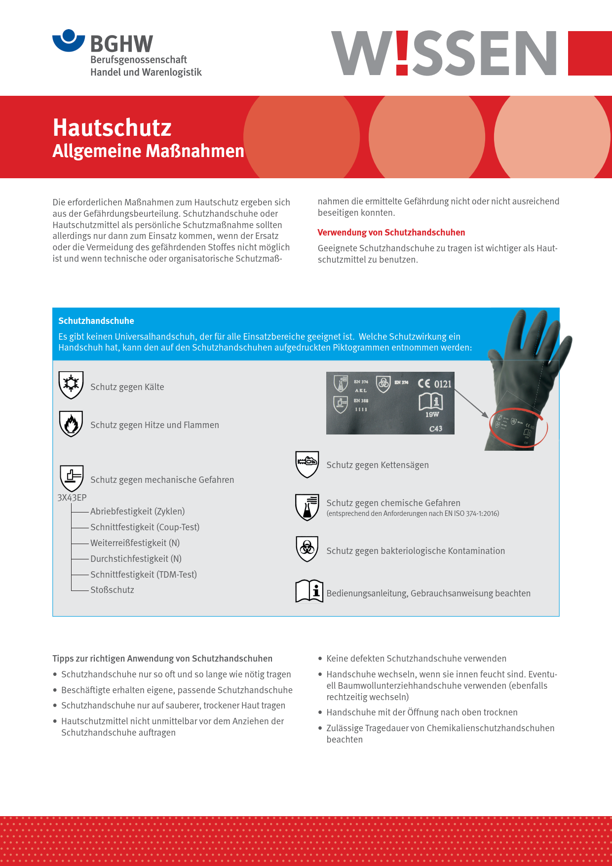 Dieses BGHW-Wissen informiert über allgemeine Hautschutzmaßnahmen. Es enthält zudem Hinweise auf weiterführende Informationen.