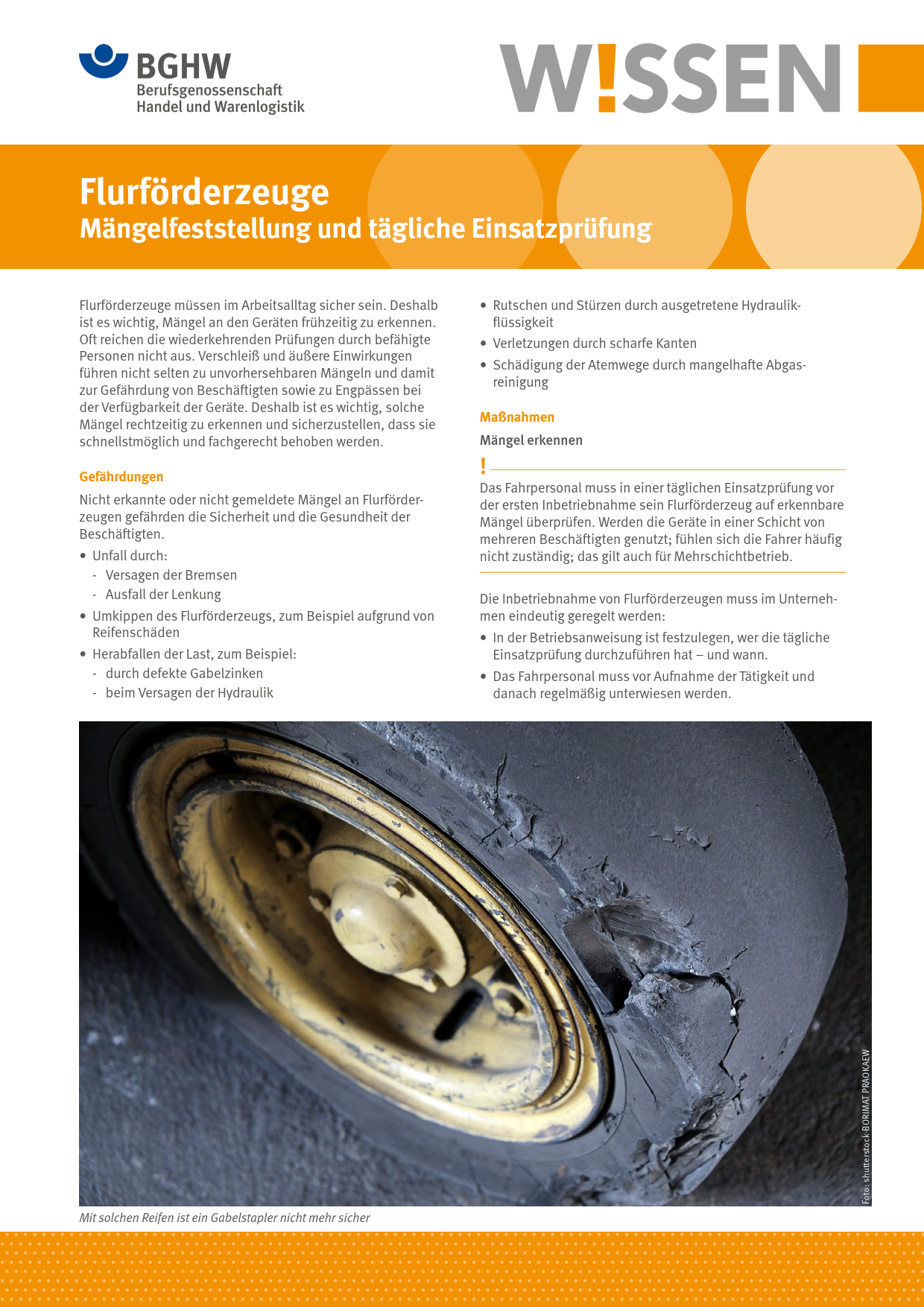 - Flurförderzeuge - Mängelfeststellung und tägliche Einsatzprüfung (PDF, 3,09 MB)