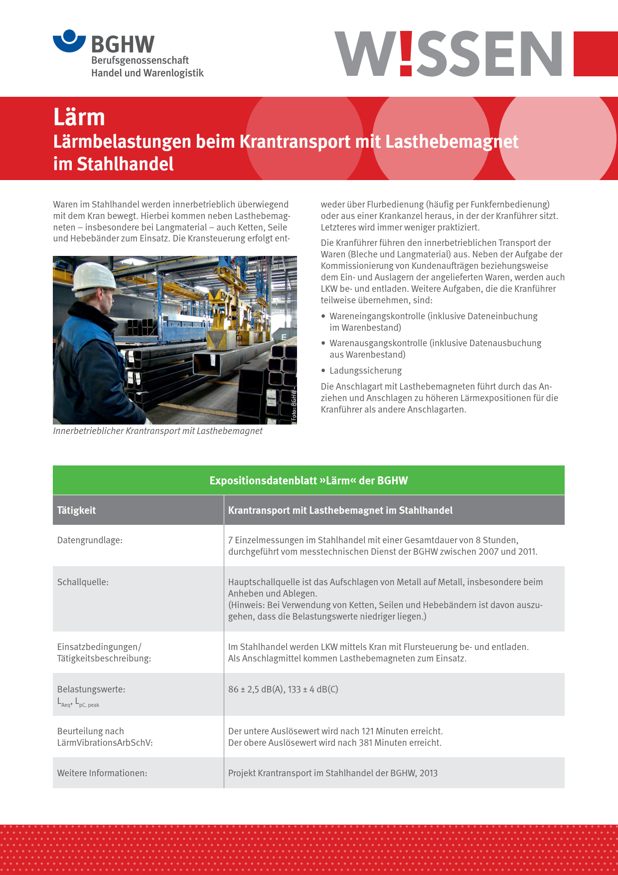 - Lärm - Lärmbelastungen beim Krantransport mit Lasthebemagnet im Stahlhandel (PDF, 1,05 MB)