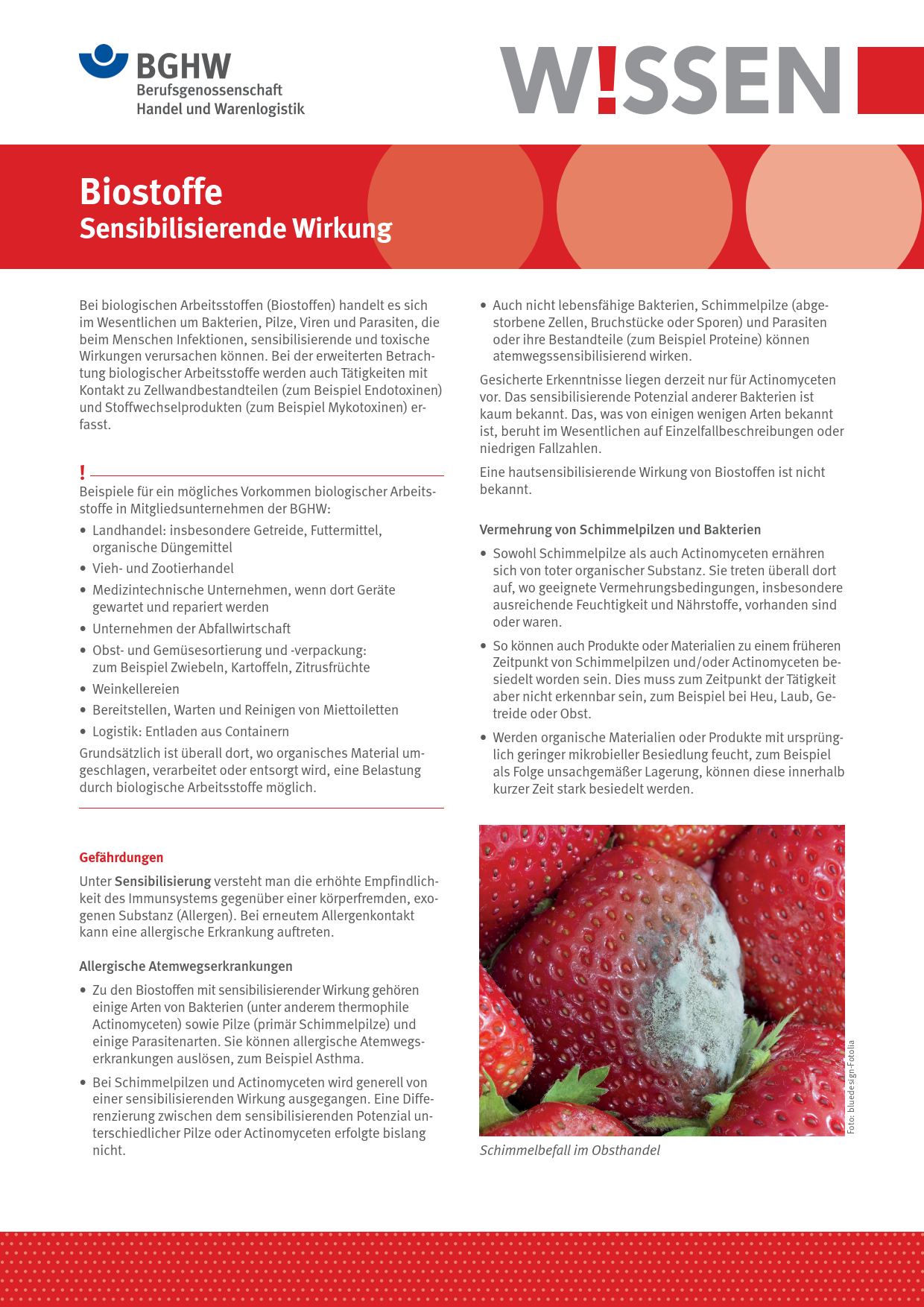 Dieses BGHW-Wissen befasst sich mit den Gefährdungen und Schutzmaßnahmen beim Umgang mit biologischen Arbeitsstoffen, die zu Allergien führen können. Es ermöglicht einen übersichtlichen Einstieg in die Thematik und verweist auf weiterführende Informationen.