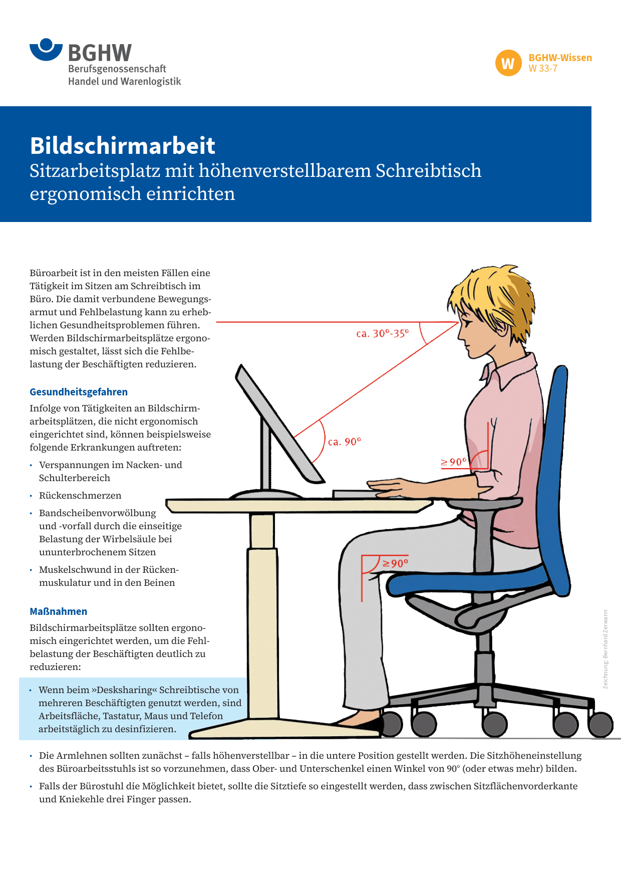 - Bildschirmarbeit – Sitzarbeitsplatz mit höhenverstellbarem Schreibtisch ergonomisch einrichten (PDF, 3,25 MB)