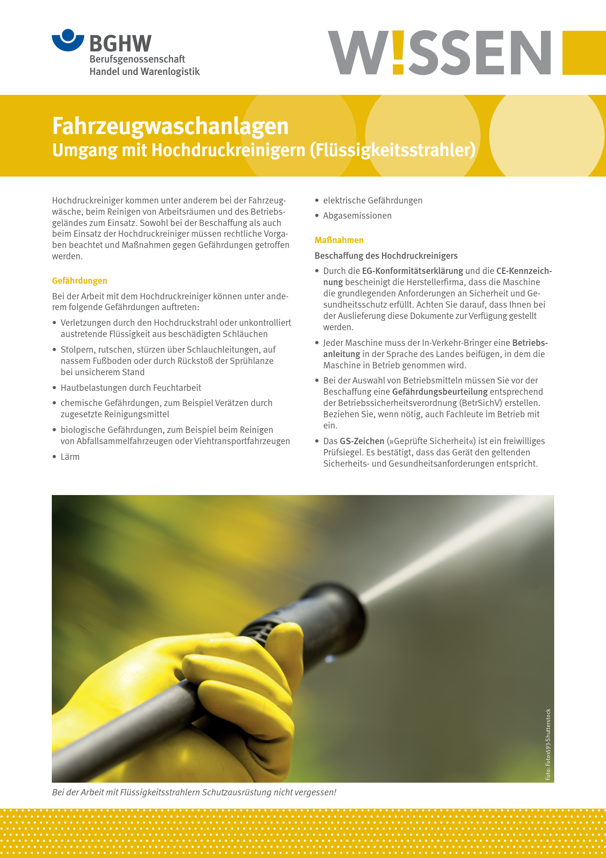 Fahrzeugwaschanlagen - Umgang mit Hochdruckreinigern (Flüssigkeitsstrahler)