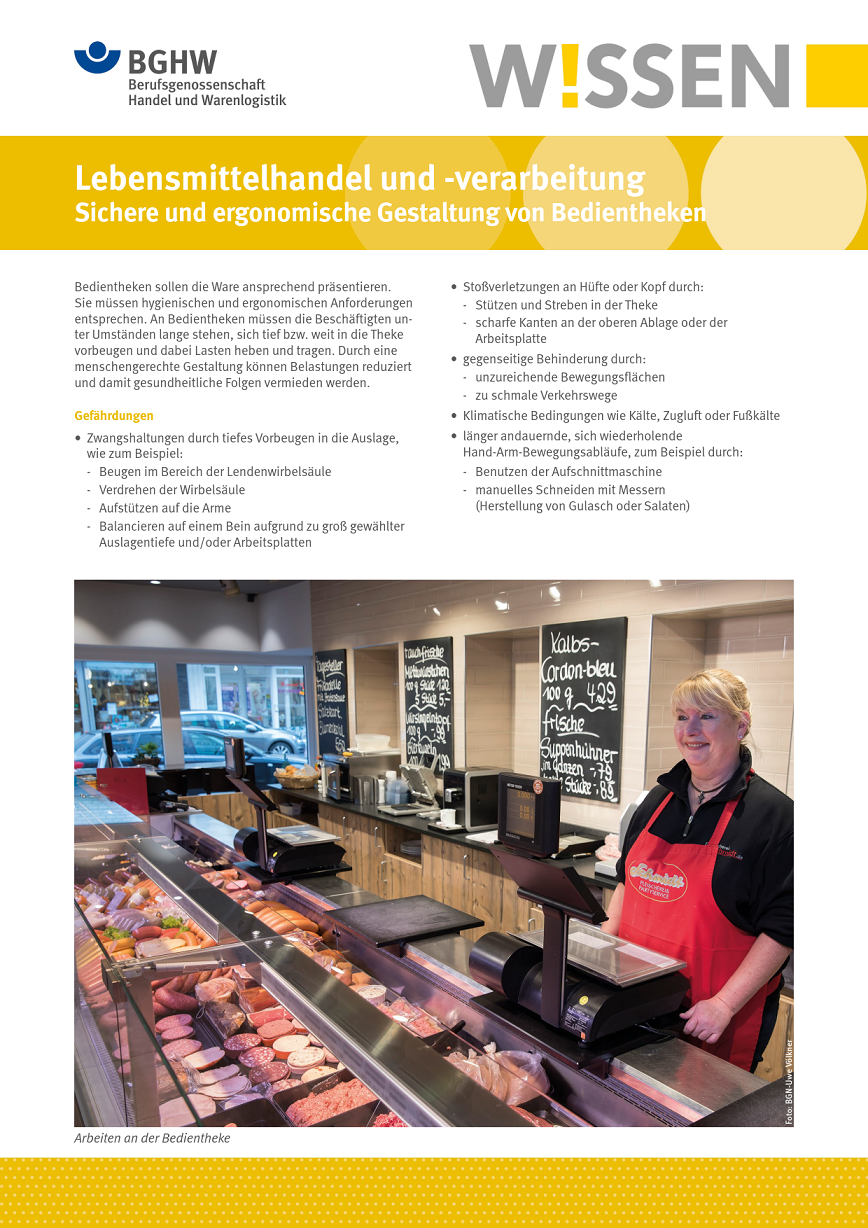 Dieses BGHW-Wissen zeigt zum einen typische Gefährdungen auf, die bei der Arbeit an Bedientheken entstehen können. Zum anderen werden umfangreiche Empfehlungen für Schutzmaßnahmen gegeben. Enthalten sind ferner Hinweise auf weiterführende Informationen.