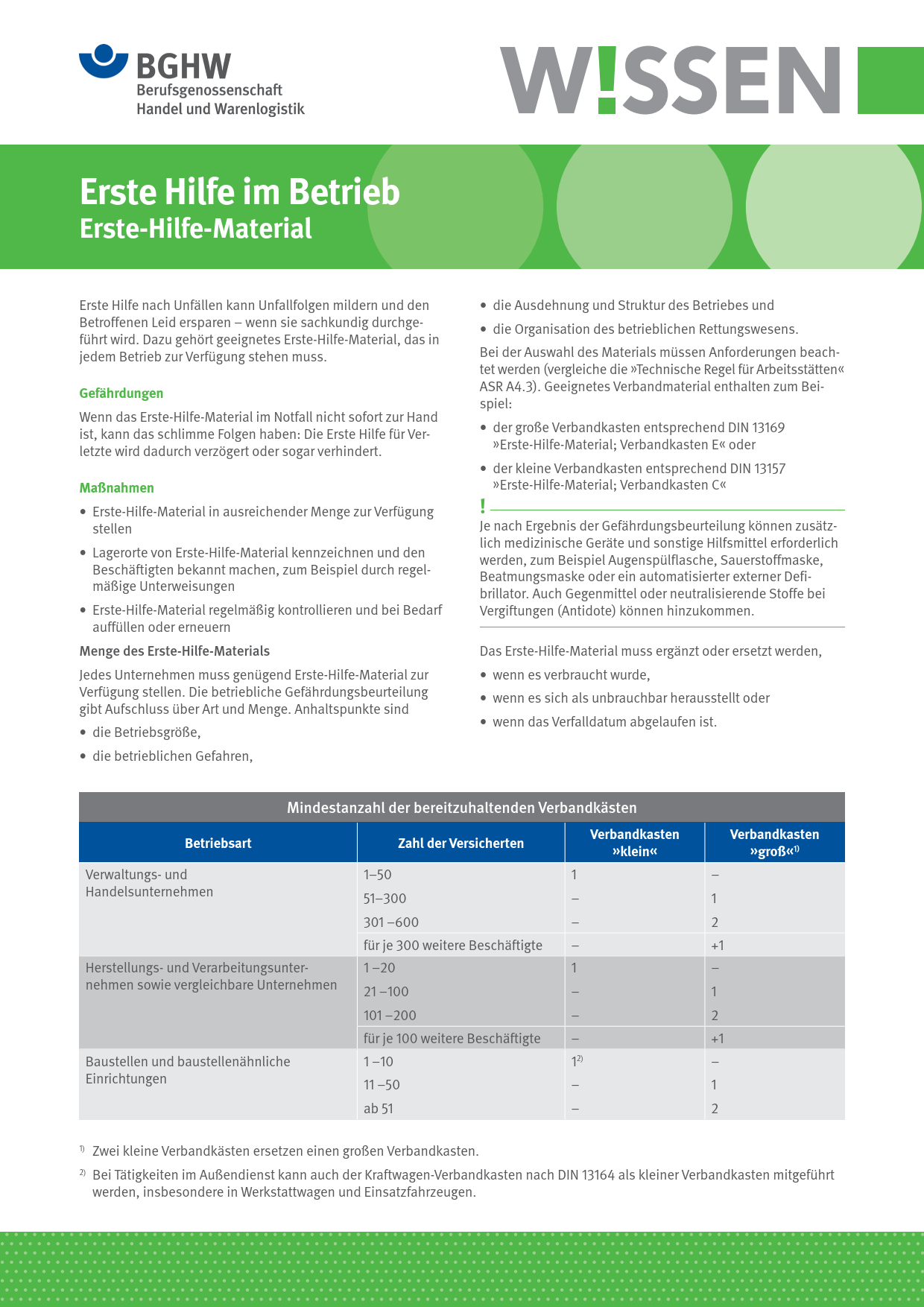- Erste Hilfe im Betrieb - Erste-Hilfe-Material (PDF, 713,74 KB)