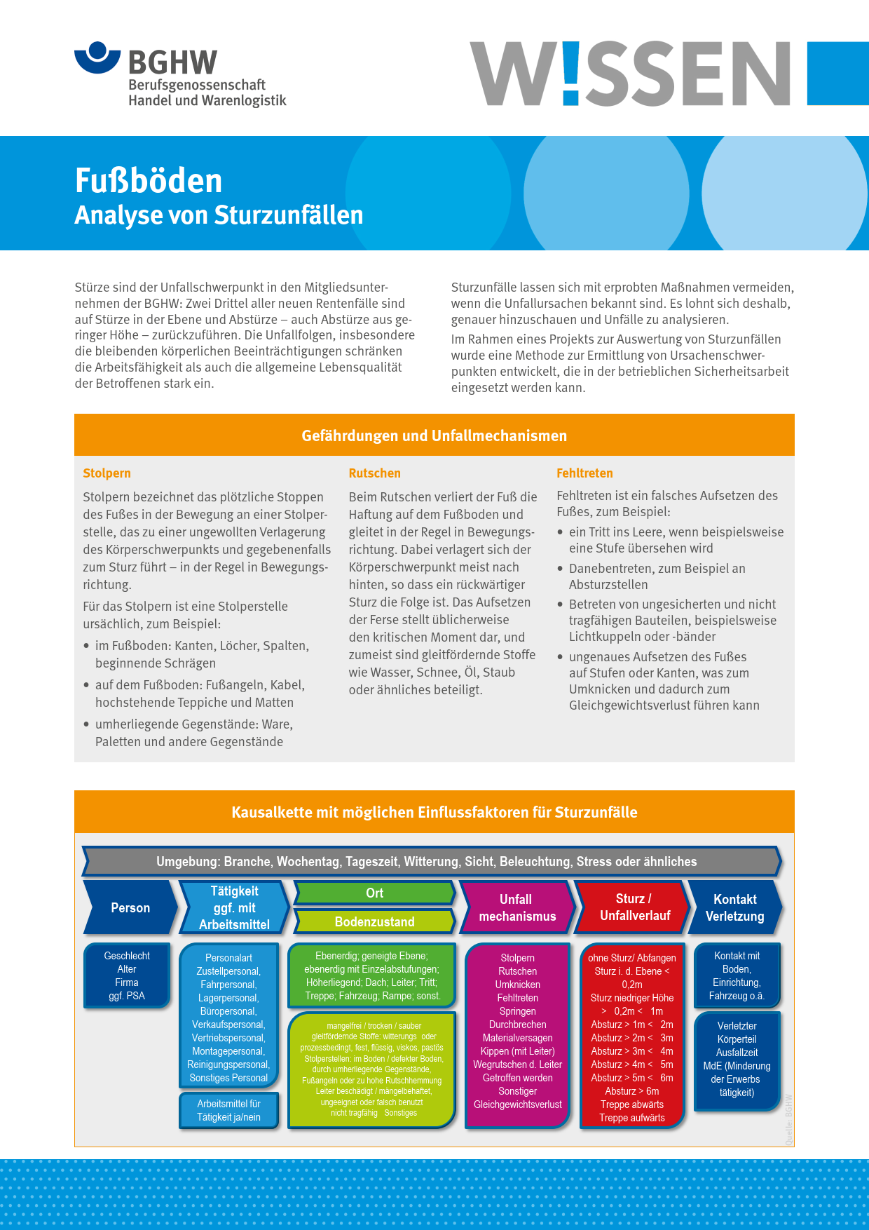 Dieses BGHW-Wissen stellt eine Methode zur Analyse von Unfällen durch Stolpern, Rutschen, Stürzen, Abstürzen und Fehltreten vor, die Mitgliedsunternehmen helfen kann, entsprechende Unfälle genauer zu betrachten und passgenaue Präventionsmaßnahmen abzuleiten. Das excelbasierte Tool ist hier zu finden.