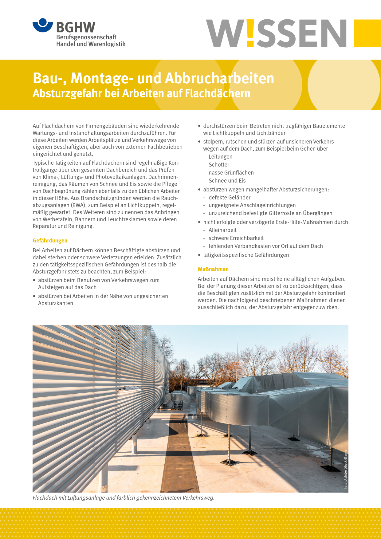 - Bau-, Montage-, Abbrucharbeiten - Absturzgefahr bei Arbeiten auf Flachdächern (PDF, 5,12 MB)