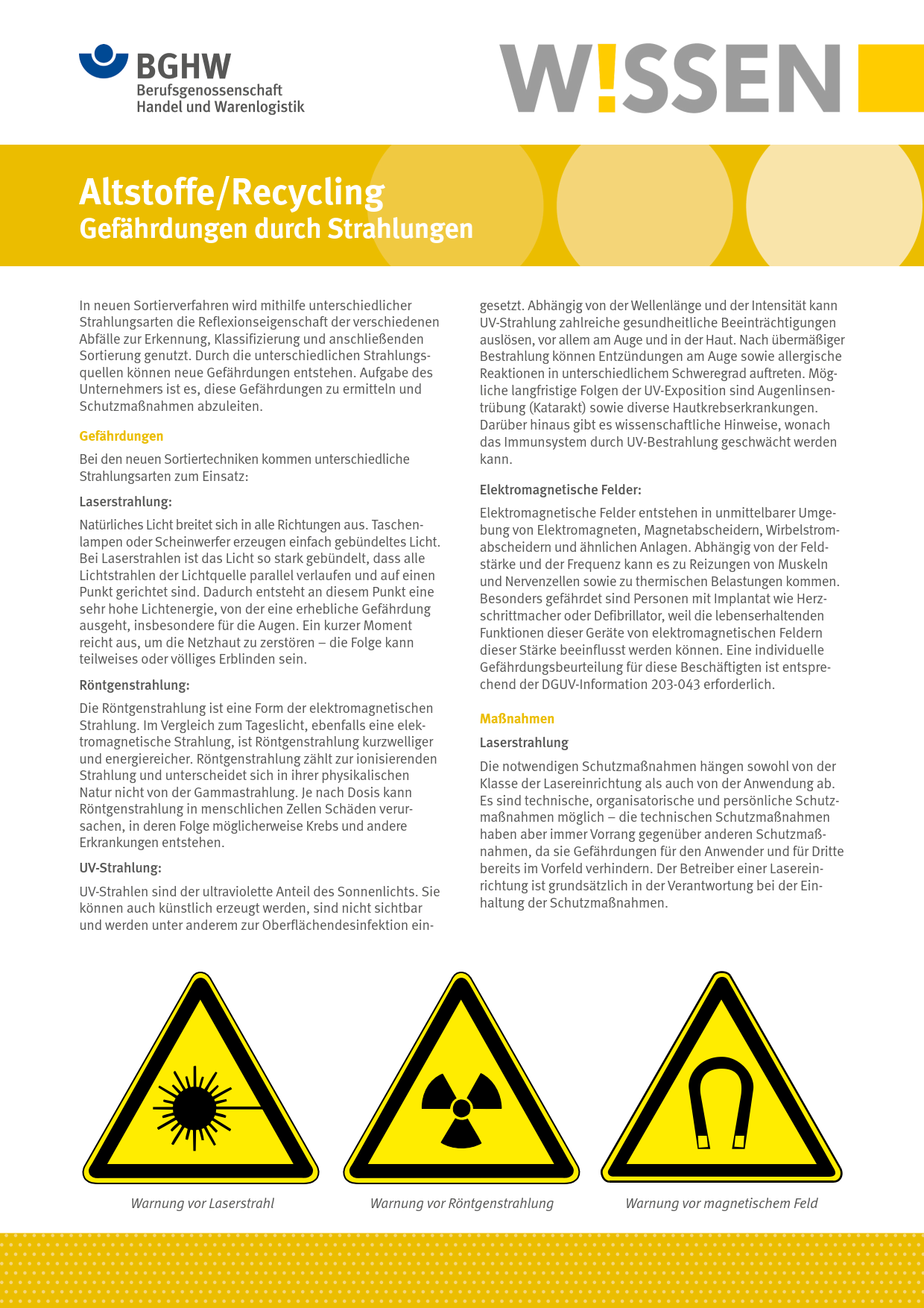 - Altstoffe/Recycling - Gefährdungen durch Strahlungen (PDF, 767,74 KB)