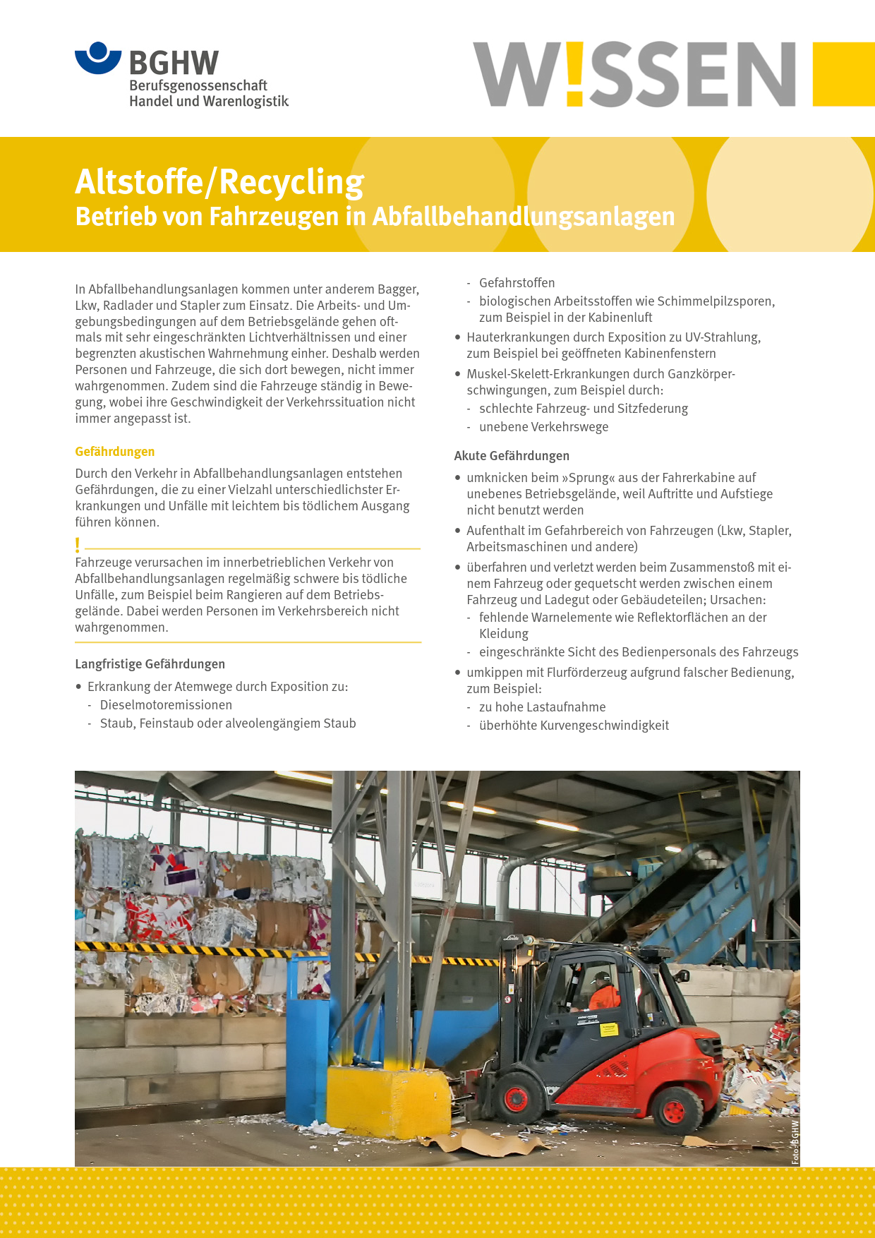 - Altstoffe/Recycling - Betrieb von Fahrzeugen in Abfallbehandlungsanlagen (PDF, 420,83 KB)