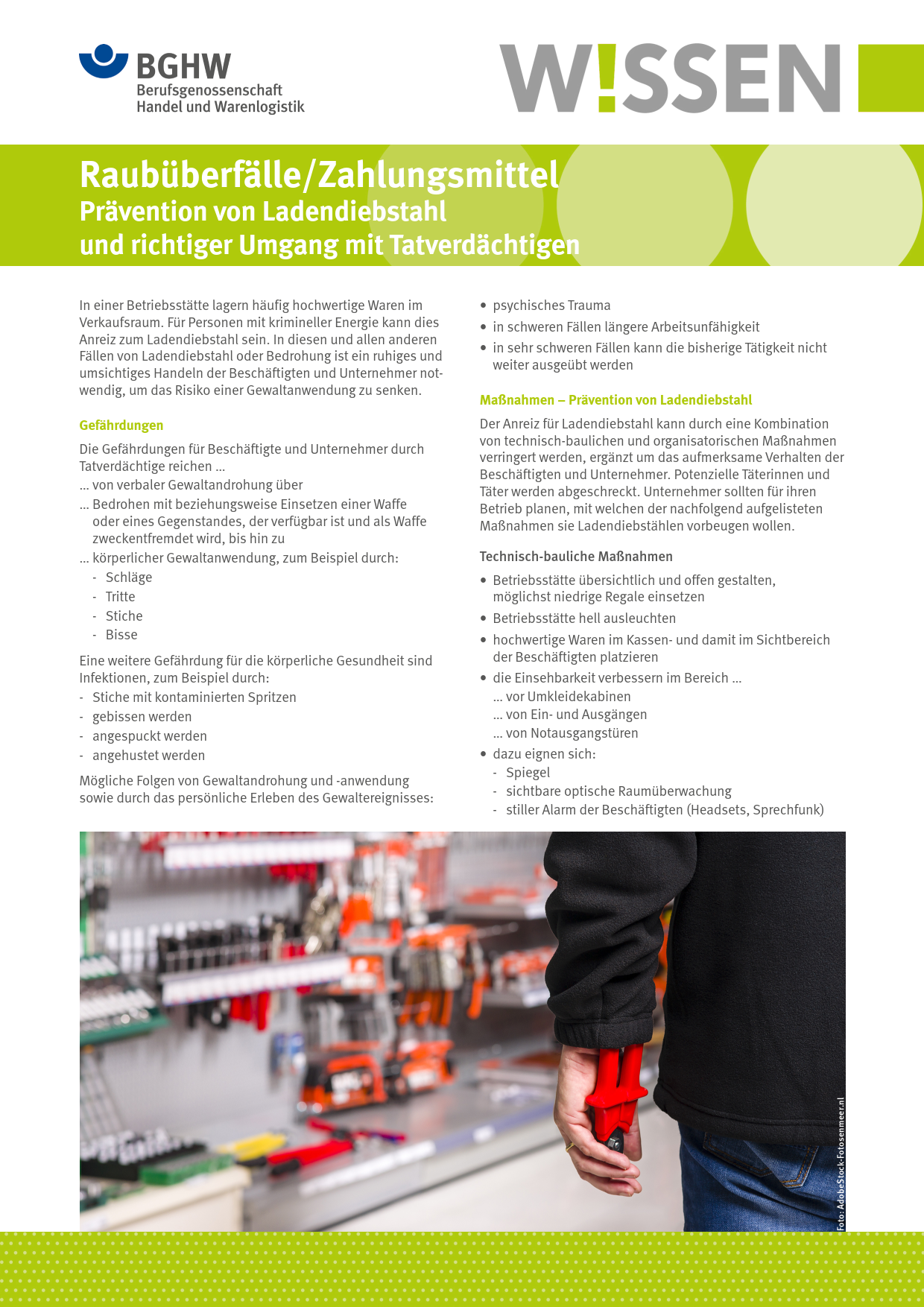 - Raubüberfälle/Zahlungsmittel - Prävention von Ladendiebstahl und richtiger Umgang mit Tatverdächtigen (PDF, 3,11 MB)