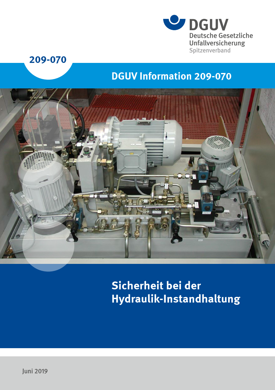 Diese DGUV Information bietet umfangreiche Informationen zur sicheren Durchführung von Instandhaltungsarbeiten an hydraulischen Ausrüstungen. Die Schrift unterstützt die Ermittlung und Bewertung von Gefährdungen sowie die Ableitung von Maßnahmen entsprechend der allgemeinen Technischen Regel für Betriebssicherheit TRBS 1112 „Instandhaltung“ hinsichtlich der speziellen Gefährdungen bei der Hydraulik-Instandhaltung.