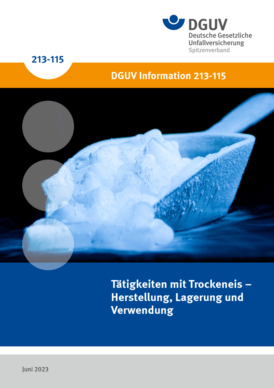 Diese DGUV Information beschreibt Gefährdungen und Schutzmaßnahmen in Zusammenhang mit der Herstellung, Lagerung und Verwendung von Trockeneis. Neben grundsätzlichen Informationen zum Thema werden einige spezielle Tätigkeitsbereiche näher beleuchtet, wie z. B. die Zustellung durch Post- und Kurierdienste oder die Auslieferung von Tiefkühlwaren. Inhalt sind zudem Erste Hilfe-Maßnahmen, die Messtechnik sowie die Lagerung von Kohlendioxid zur Trockeneisproduktion.