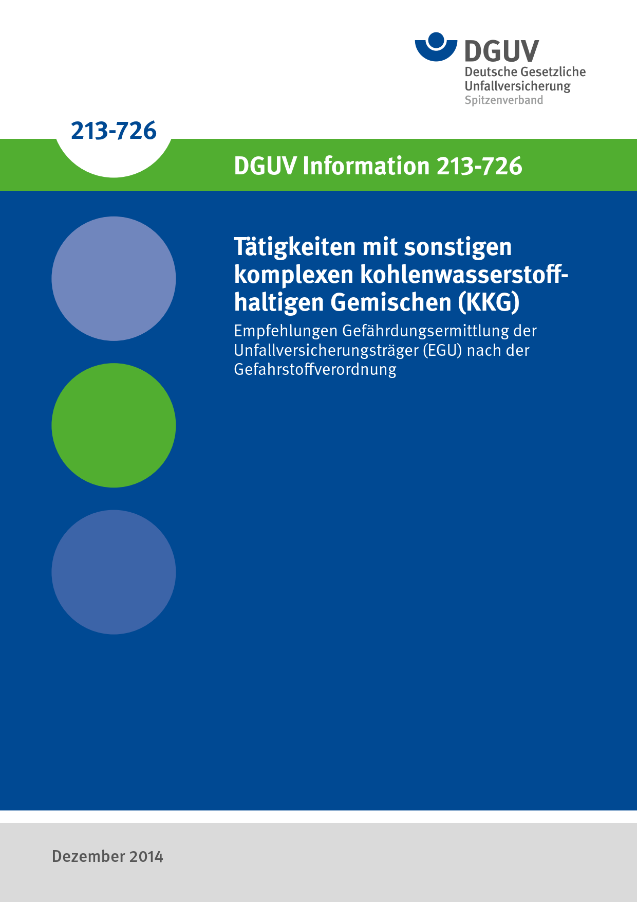 Diese DGUV Information enthält Empfehlungen zur Gefährdungsermittlung der Unfallversicherungsträger (EGU) nach der Gefahrstoffverordnung für Tätigkeiten mit sonstigen komplexen kohlenwasserstoffhaltigen Gemischen (KKG). Dazu werden u. a. verschiedene KKG mit ihren Verwendungszwecken beschrieben, Messstrategien sowie exemplarische Messergebnisse vorgestellt sowie sinnvolle Schutzmaßnahmen für den Umgang mit KKG im Unternehmen genannt.