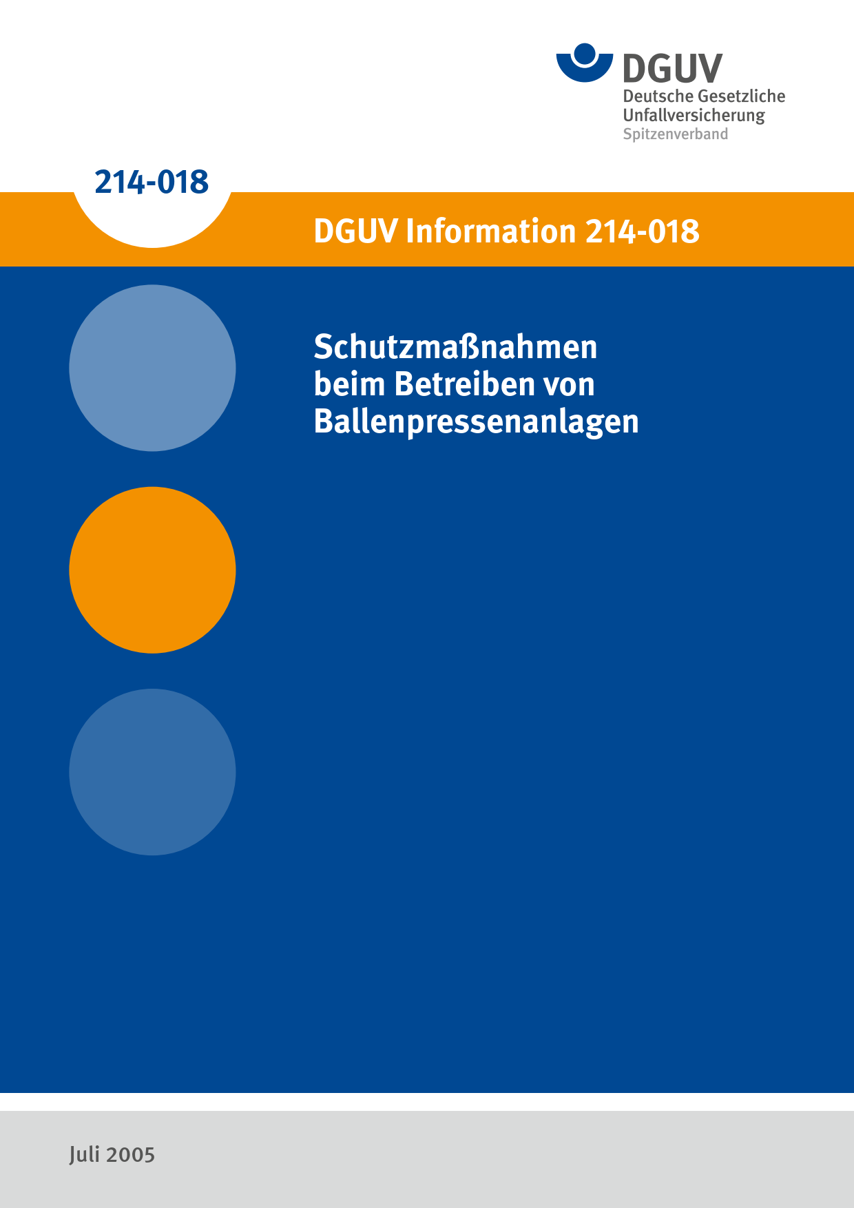 Diese DGUV Information erläutert wichtige Begriffe im Kontext von Ballenpressenanlagen und stellt typische Gefährdungen beim Umgang mit entsprechenden Anlagen vor. Zudem werden geeignete, insbesondere technische und organisatorische, Schutzmaßnahmen vorgestellt und Hinweise zur Prüfung von Ballenpressenanlagen gegeben.